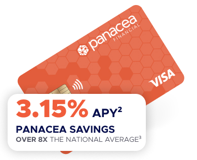 - 2. National Average based on FDIC as of 1/27/2026 (https://www.fdic.gov/regulations/resources/rates). APY = Annual Percentage Yield. The advertised APY is effective 1/27/2026 and subject to change thereafter. No minimum balance required to obtain the APY. The minimum to open a Panacea Savings Account is $25. Fees may reduce earnings. Offer is subject to change without notice and may be withdrawn at any time.